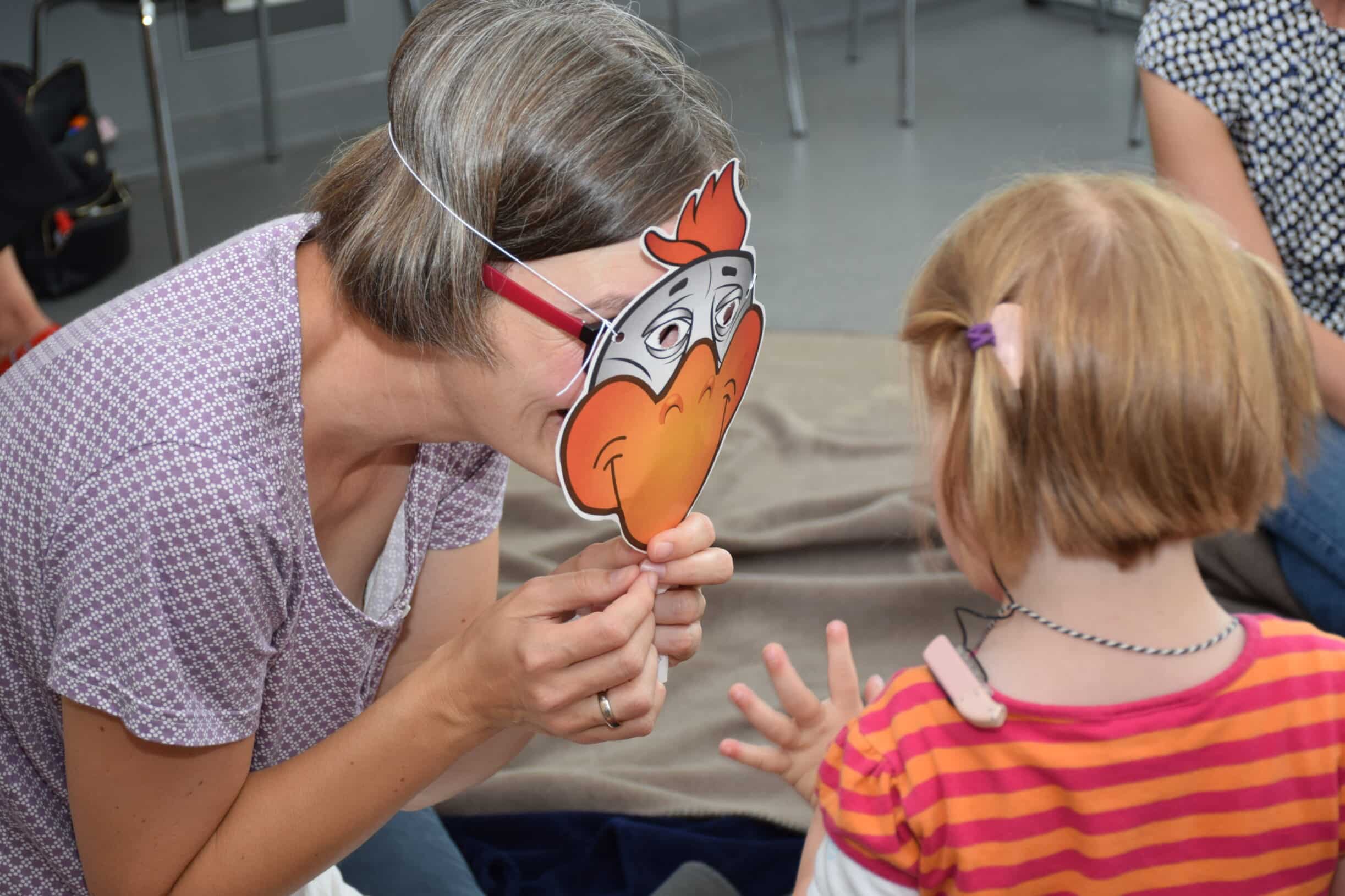 Der Workshop für Kinder von rund 2-10 Jahren fand am Nachmittag statt. Die älteren Kinder musizierten unter Anleitung gemeinsam auf den Orff-Instrumenten und schulten dabei ihr Rhythmusgefühl und Melodiegehör. Die kleineren und ihre Eltern lauschten mit Johanna Boyer einigen Stücken aus dem „Karneval der Tiere“ und bewegten sich anschließend zur Musik. Die Kinder hatten großen Spaß mit den Tiermasken und dem Imitieren von Löwen, Hühnern und Fischen!