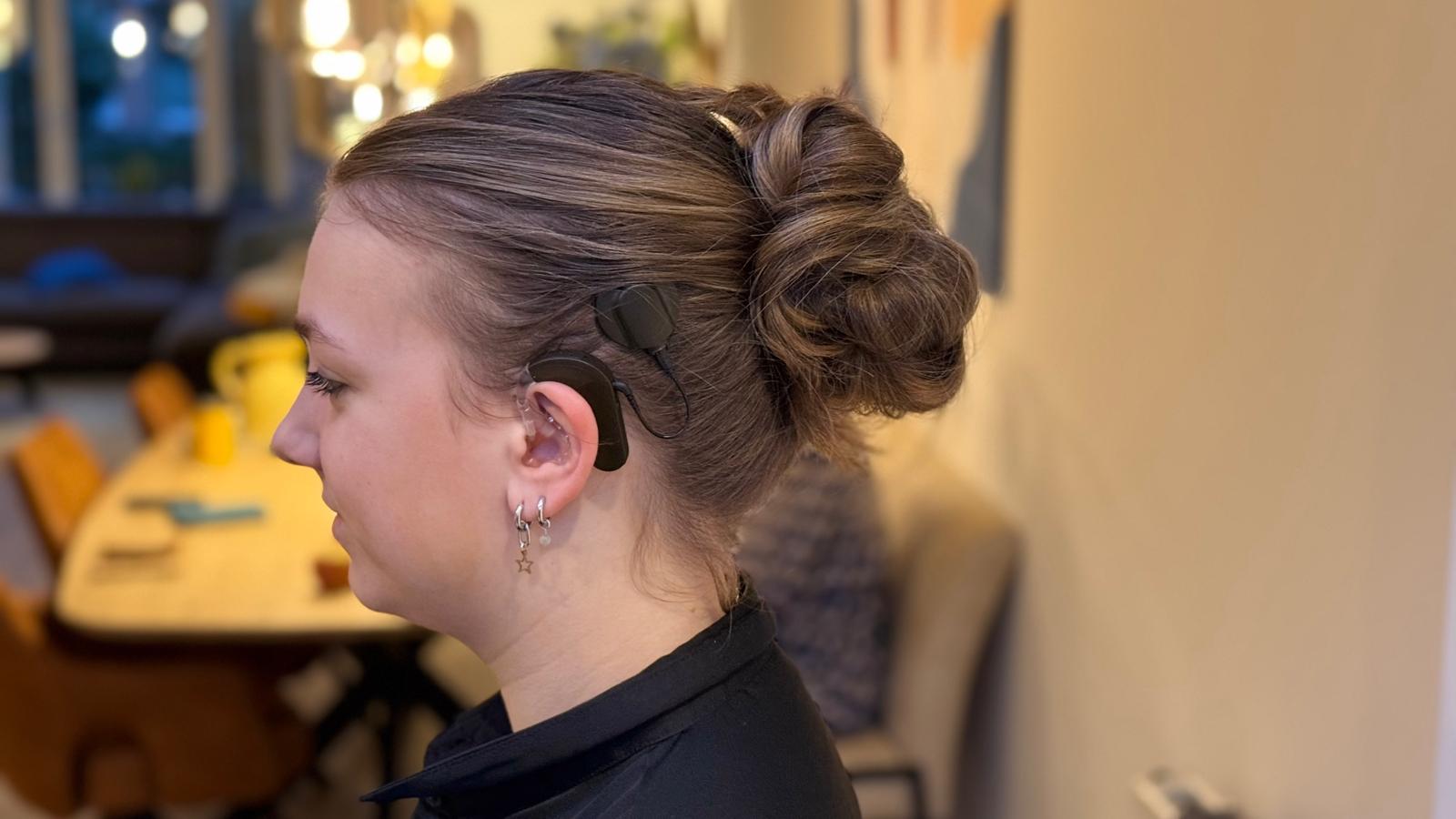 “Ik droeg namelijk toen aan de ene kant een CI en aan de andere kant een hoortoestel. Al snel merkte ik dat ik met mijn hoortoestel veel minder hoorde dan met mijn CI. Dit vond ik jammer en ook vervelend horen, ik kreeg niet alles mee en hoorde moeilijk van welke kant welk geluid kwam. Daarnaast had ik al het meest versterkende hoortoestel dat mogelijk was en deze kon niet meer harder of beter om mijn CI bij te kunnen houden.”