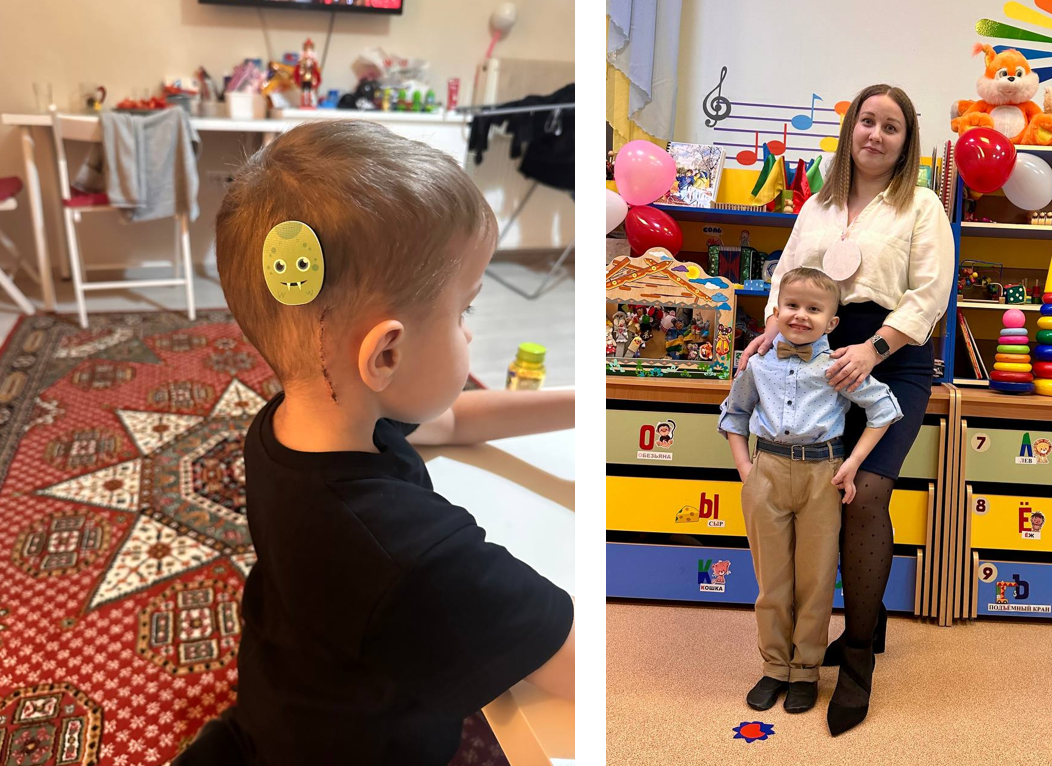 — Когда подключили процессор, врачи сразу считали реакцию на звук. Начали улыбаться и хлопать, обрадовались, что все прошло хорошо. Когда после подключения нас отправили в «Школу реабилитации» при клинике, все отмечали, что заметно, что мы с Егором занимались, — делится Анна. — Сын умный малыш, он многое умеет, может даже сам вписать в планшете в поиск в интернете то, что ему нужно, даже на английском. Это дает надежду, что от стволомозговой имплантации будет эффект, а мы сделаем все возможное, чтобы помочь Егору: вернувшись в Россию продолжаем заниматься и сами, и с сурдопедагогом. Сейчас наша задача — научить Егора различать звуки, слышать и сопоставлять их. Егор учится различать гласные «а, о, у», запоминать слова. Он стал чуть четче произносит «мама» и другие слова, которые его учили произносить еще до имплантации. Но эффект от операции появился не только в слухе. Егор ходит в детский сад для слабослышащих и глухих детей, у него все детишки в группе были с кохлеарными имплантами. Поэтому, когда он вернулся в группу с RONDO3, я увидела, что он стал поувереннее в себе — ведь теперь у него есть такой же аппарат, как у других детишек. Гордо носит свой процессор с зеленой крышечкой! Все время проверяет, на месте ли его аудиопроцессор, сам берет по утрам и надевает его.